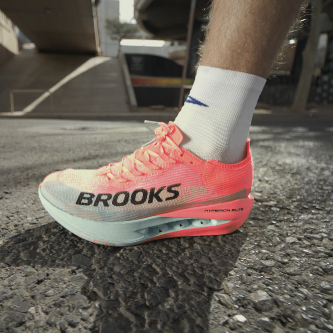 - BROOKS史上最高のエネルギーリターンを誇る"DNA GOLD"は、100%PEBA素材に窒素を高圧注入して開発された、超軽量・高反発・高柔軟性の新フォームです。従来の"DNA FLASH v2"と比べて、11%の軽量化、14%のエネルギーリターン向上、25%の柔軟性向上を実現。エリートランナーの走りをさらに加速させます。