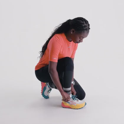 - 窒素を注入したDNA LOFT v3クッショニングを厚底に搭載し、極上のやわらかさを実現。岩や木の根があるような荒れた地形でもしっかりと衝撃を吸収。長距離ランでも快適な走りをサポートします。