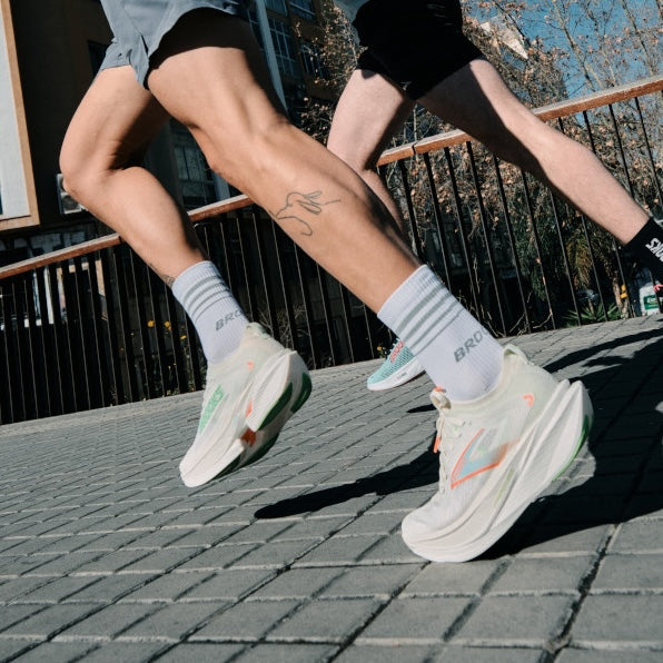 - BROOKS史上最高のエネルギーリターンを誇る"DNA GOLD"は、100%PEBA素材に窒素を高圧注入して開発された、超軽量・高反発・高柔軟性のクッショニングフォームです。従来の「DNA FLASH v2」と比較して、11%の軽量化、14%のエネルギーリターン向上、25%の柔軟性向上を実現。この2種のフォームを重ねた二層構造ミッドソールに、推進力高める「Speed Vault プレート」を組み合わせることで、高いクッション性・安定した着地・スムーズな重心移動・力強い蹴り出しを同時に実現しました。日々のスピードトレーニングからレース本番まで、さまざまなパフォーマンスシーンで力を発揮します。